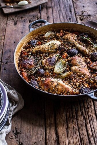 Save RecipeMain CourseSeptember 24, 2014One-Pot Autumn Herb Roasted Chicken with Butter Toasted Wild Rice Pilaf.