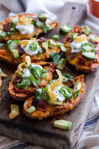 Save RecipeMain CourseOctober 5, 2014Chicken Chili Con Carne Stuffed Sweet Potato Skins + Links to Inspire.