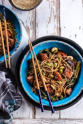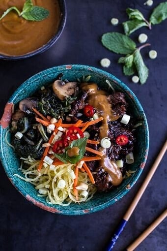 Save RecipeMain CourseJanuary 12, 2015Vietnamese Lemongrass Beef and Spaghetti Squash Noodle Bowls with Peanut Sauce.