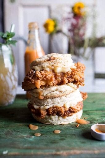 Save RecipeMain CourseJune 3, 2015Buttermilk Chicken Biscuit with Habanero Peach Hot Sauce + Honey Butter.