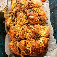 So much so that if you’re feeding a large crowd, I’d recommend doubling the recipe. Promise, this cheesy pull apart bread does not last long!