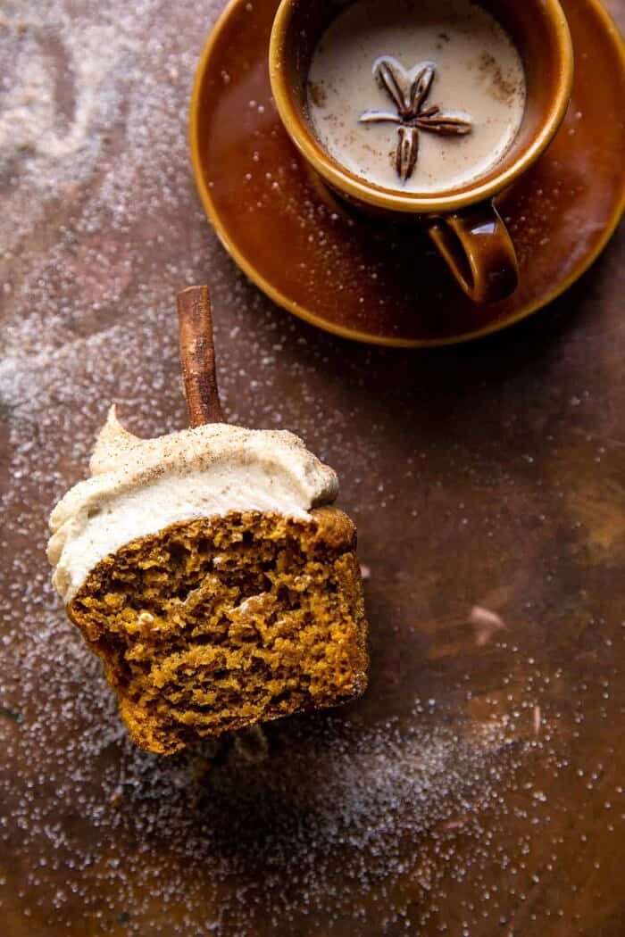 Vanilla Chai Pumpkin Latte Cupcakes with Cinnamon Brown Sugar Frosting