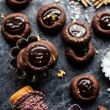 I think one of the best things about December is all the cookies. I mean, they’re practically everywhere, and I gotta say, I love it! I mean, who could not? Cookies are the best. I’ve gotten into the habit of sending out a box of cookies to people I work with and close family members the week before Christmas. In prepping for this year’s box, I wanted to have a few new cookie recipes to include, and obviously these Chocolate Espresso Thumbprint Cookies are making the cut.