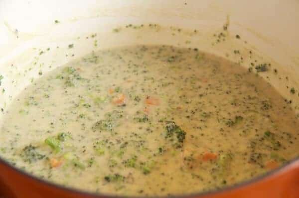 Honestly, this has got to be one of the simplest soup recipes. It comes together so fast, is healthy, and filling! Instead of using heavy cream I swapped in 2% milk and chicken broth and swapped out some of the butter for olive oil. Throw in a whole lot of broccoli some salt and lots of pepper. Let this simmer and then puree. I like to leave mine a little chunky. Then add in your cheddar cheese. Simple and delicious.