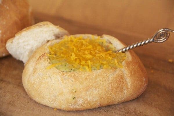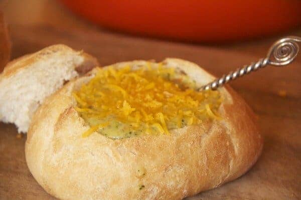 November is the perfect weather for Creamy Broccoli Cheddar Soup…especially in homemade sourdough bread bowls.