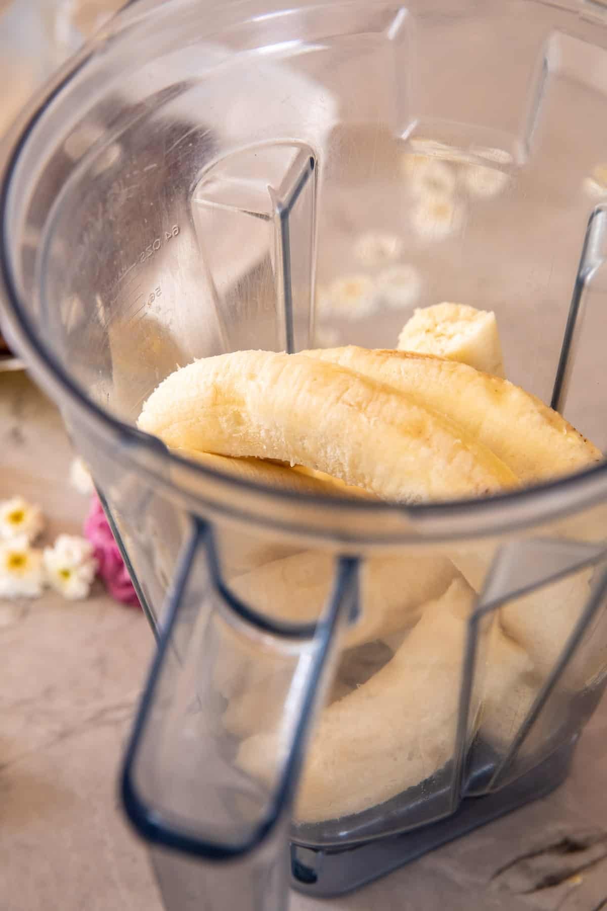 Add all ingredients to a blender, no need to slice the bananas. Just blend them up until creamy.