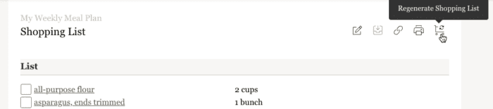 7. Remember, if you update recipes in your collection or meal plan after generating your shopping list, be sure to click โRegenerate Shopping Listโ to pull in those updates.