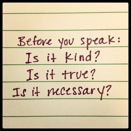 A good reminder for us all. My mom always says, if you don’t have anything nice to say, don’t say anything at all. And it’s true. And my mom’s number one rule to live by…treat others as you would want them to treat you. That should take care of just about everything!