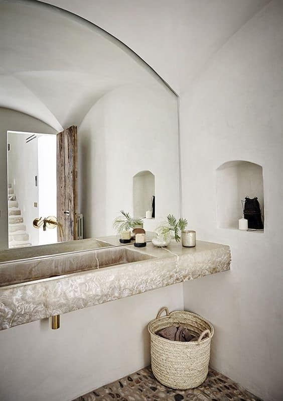 As I mentioned above, I’m working on doing a few more things for myself. One of the things I’ve been wanting to do is replace the vanity in my bathroom. It’s a vintage piece that sadly is not very functional. Since I spend a good amount of time washing my face and doing my daily skincare. I’ve been wanting to install a new vanity with a larger sink area. I spent some time last night scouring Pinterest for inspiration, here are some of the bathrooms I love most.