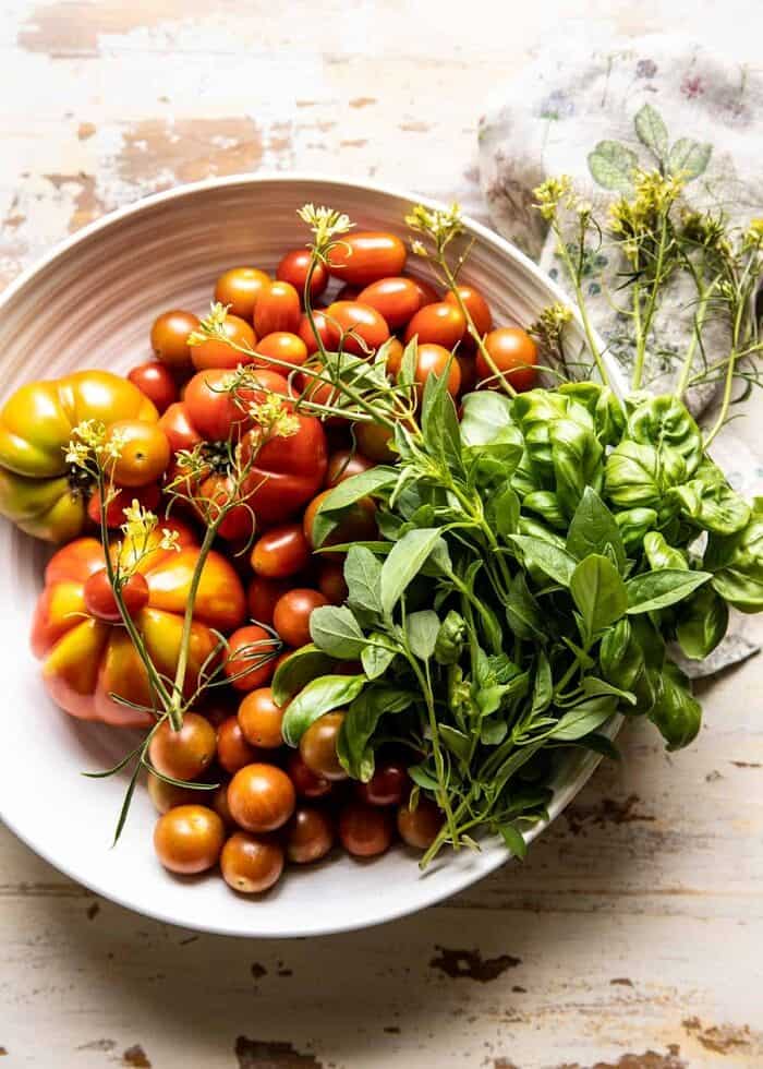 Basil Chicken Saltimbocca with Marinated Tomatoes + Burrata…think of this like chicken parmesan, but better.