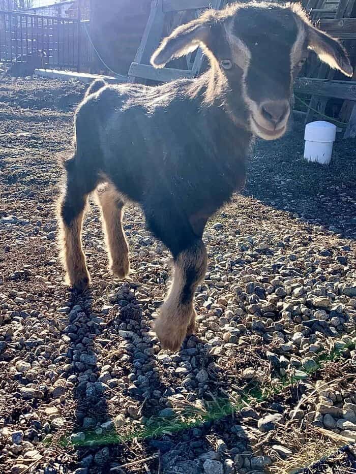 Our newest little baby goat! Surprise! While we were in California, one of our goats had her babies. The funny thing? We weren’t even sure she was pregnant. My dad and I had an idea she might be, but we definitely weren’t sure. Sadly only one of 3 survived, but he’s a lively little one!