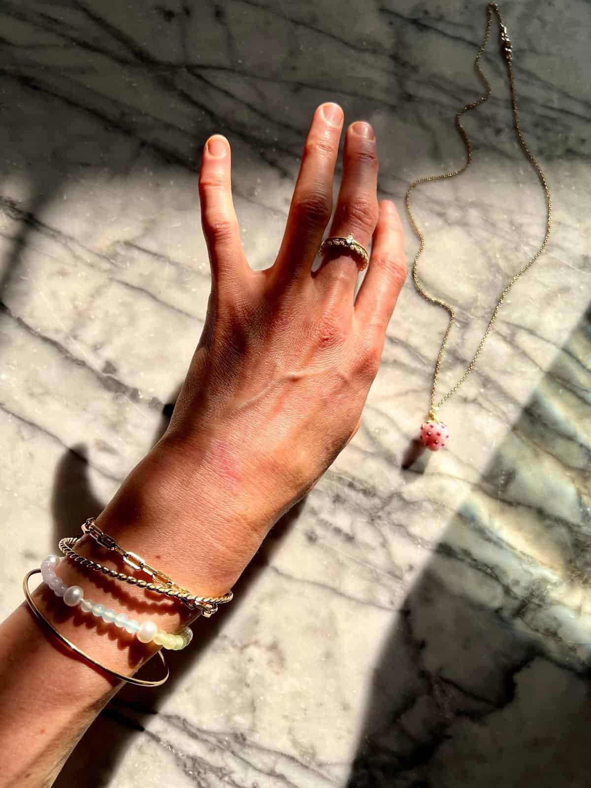 wearing…Ariel Gordan Jewelry. All of her pieces are stunning, I am loving the teensy pear diamond ring especially. The sherbert bracelet and strawberry necklace are so super sweet and playful.
