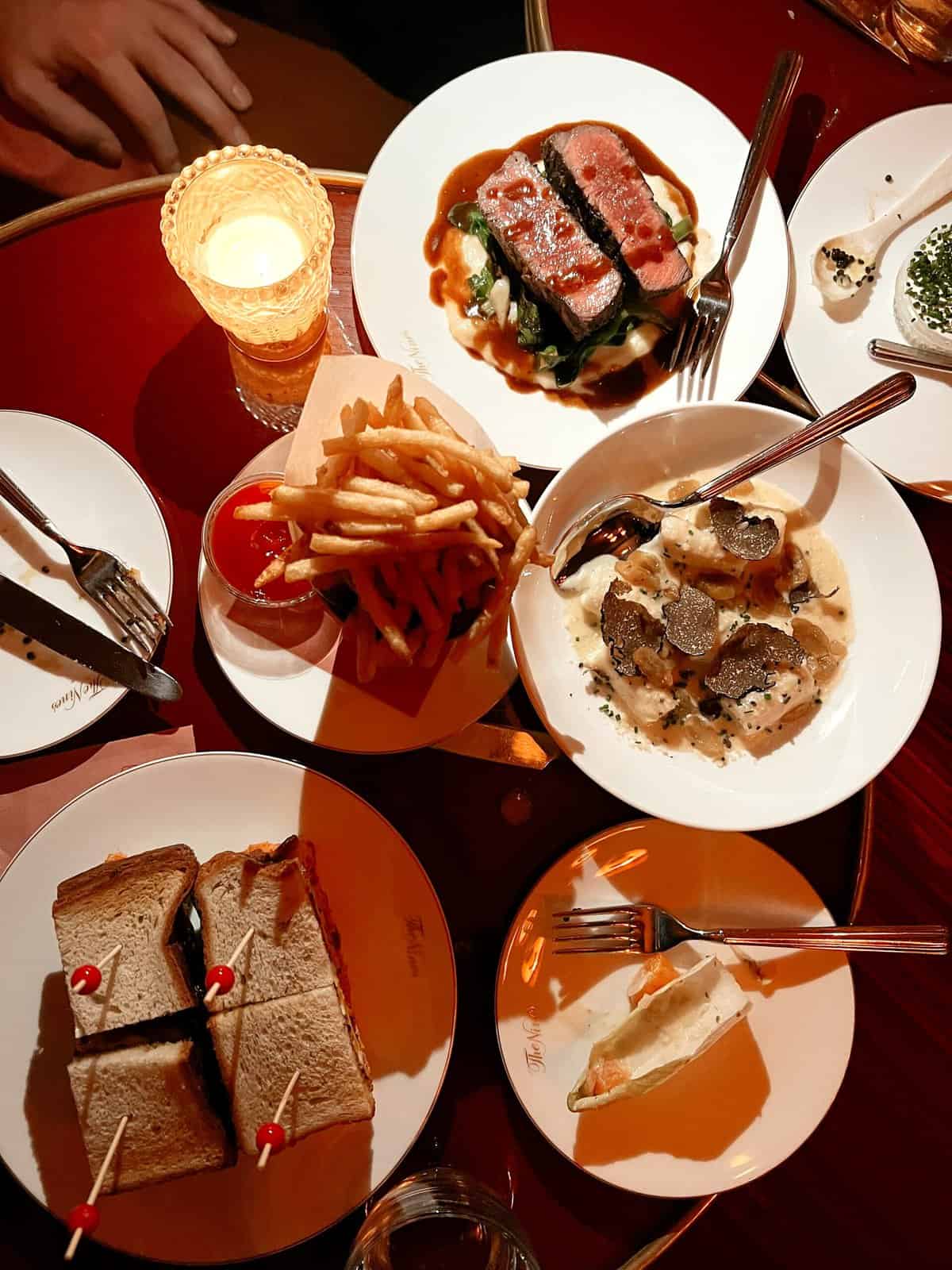Letโs see, aside from the hotel, I had a fun dinner at The Nines. Iโve been wanting to go here since it opened. Itโs such a special, chic New York spot with a really nice vibe. I think people come for the drinks, but honestly, the food was great too. We ordered so much! Tuna Tartare, Hamachi, Smoked Salmon, Endive, Gnudi (thought this was especially good, itโs handmade pasta with truffles), and then the baked potato with caviar. Oh, and the special was the lobster club, so we got that too!