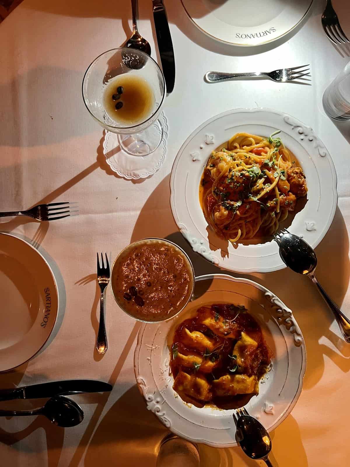 Tuesday I ended up working on the computer most of the day on a separate project that needed my attention. It rained most of the day. But the sun came out just in time for drinks on the roof of Fouquet’s before heading to dinner at Sartiano’s. This spot just opened and it’s so good. We ordered house-made focaccia, meatballs, and tuna for the table. Then I did the bucatini lobster pasta but split it with the Agnolotti. Both are so yummy!