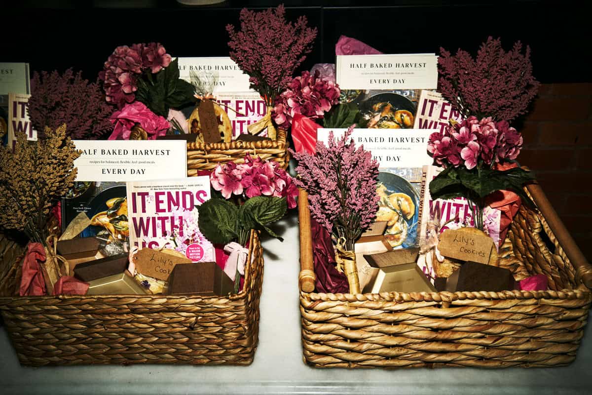 Blake and I co-hosted a press event together on Saturday night at the beautiful Fouquet’s Hotel (my favorite). I helped to curate the menu, provided a signature cocktail – the Peach Thyme Smash (as both a cocktail and mocktail), and we had both Atlas’s Hot Chocolate Cookies and Lily’s Lavender Cookies to round the menu out. Everything came together in less than 72 hours, but it was perfect. We had gift baskets full of goodies for everyone to take home, the most stunning florals, and a great guest list too! The entire cast was able to come, including Colleen (Hoover) and her husband, as well as media personnel. It was such a magical night.