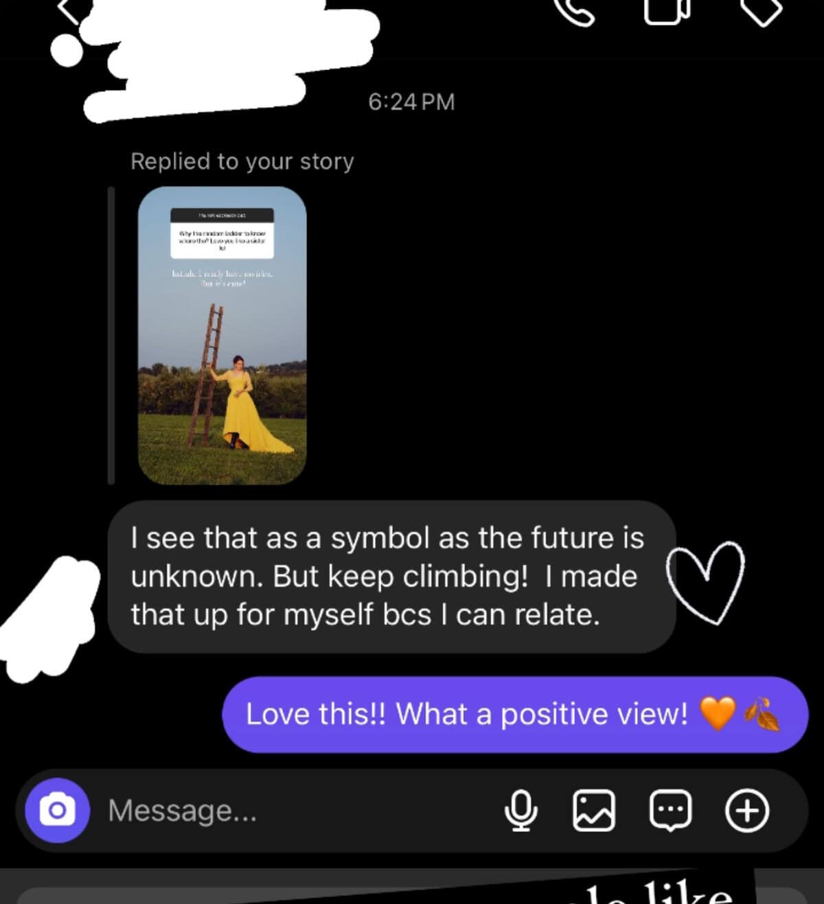 Someone had asked, “why the random ladder to know where tho? Love you like a sister, lol”. And this was a follower’s response, so sweet: