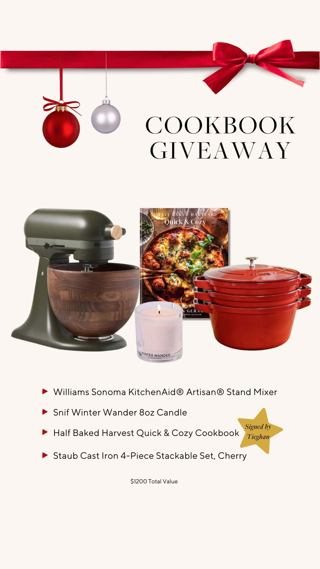 You can enter to win all items shown below here. For an extra entry, make sure to pick up a copy of the cookbook! Happiest holidays everyone! Thank you for your continued love and support!