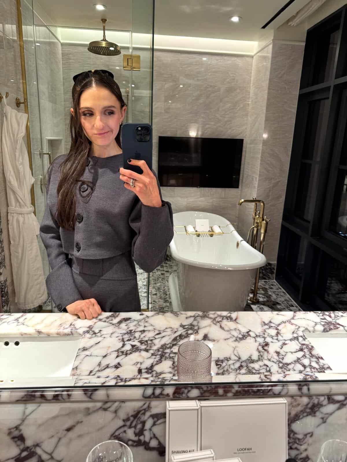 Something I LOVE that I’ve been doing at night is listening to Christmas music while editing photos with Hallmark movies on in the background. I’ve also been traveling with our holiday candles. I have Winter Wander and Gingerbread Smash here with me now. I’ve even been making a nightly “girl’s phone date” with my little sister, Asher, to catch up and talk about all things Christmas. It’s helped me not to miss home quite as much! It makes nights in a hotel room feel special, too.