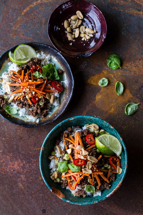 Monday: 20 Minute Thai Basil Beef and Lemongrass Rice Bowls