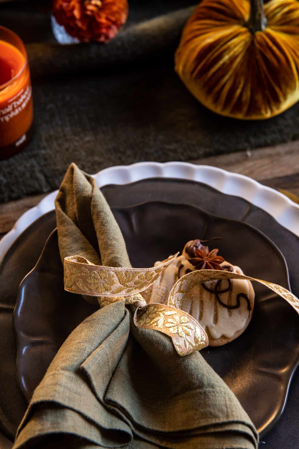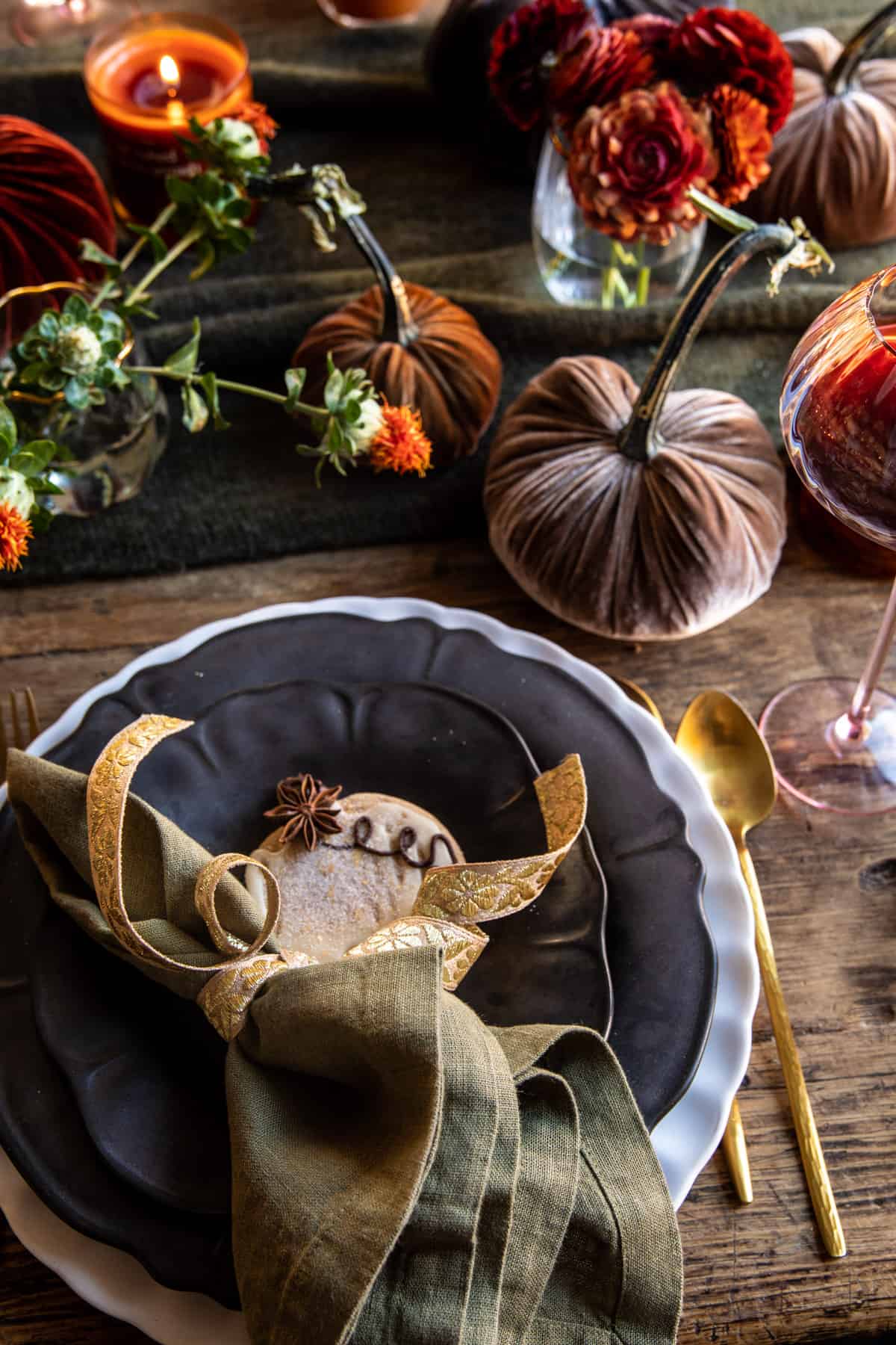 Tip: I bake the pumpkin cookies and use them as place settings for my table. It’s such an easy way to add a personal touch to your tablescape.