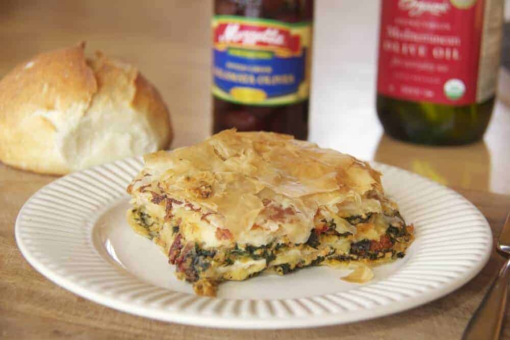 Made this last night. I’m not a huge fan of really strong Mediterranean flavors, but this was excellent. The flavor was enough to be enjoyably different from our usual fare, which is why I tried it. Mine was actually ready in about 55 minutes, so watch your cook times. I used melted butter for the dough, and I had to omit the red pepper flakes and switch to mild Italian sausage in hopes our little boys will try it today 🙂 but it is still full of flavor. My 8 year old really liked helping with the phyllo dough too (he was the “butter painter”). I know hubs will be asking for this to be made again and it would be excellent to bring to a potluck or to serve to guests, especially in a pretty baking dish, as the crust looks gorgeous (smells great too!).