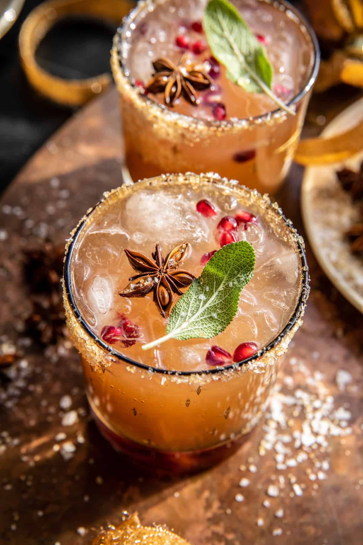 We all know I love to add an air of specialness to each cocktail. For this drink, it’s the salted vanilla sugar around the rim of each glass.