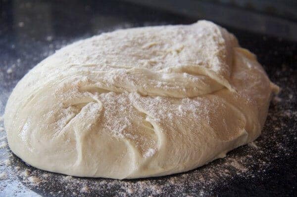 - Remove the bowl from the refrigerator and add the sugar, salt, and bread flour to the sponge. Mix until a ball of dough begins to come together. If some of the dry ingredients will not incorporate into the dough, add the additional 1 tablespoon of water to moisten them. Continue kneading the dough (on low speed if using an electric mixer) until the dough is smooth and elastic, about 5-6 minutes. Form the dough into a ball and transfer to a large lightly oiled bowl, turning the dough once to coat in the oil. Cover with plastic wrap and let rise in a warm spot until doubled in volume, 3-4 hours.