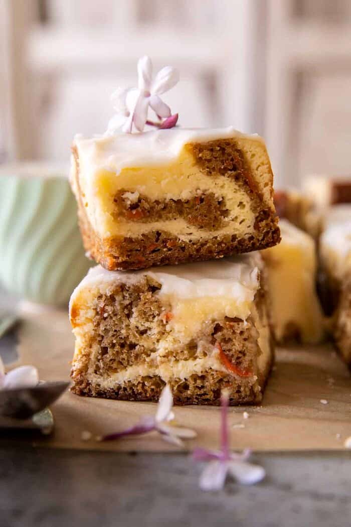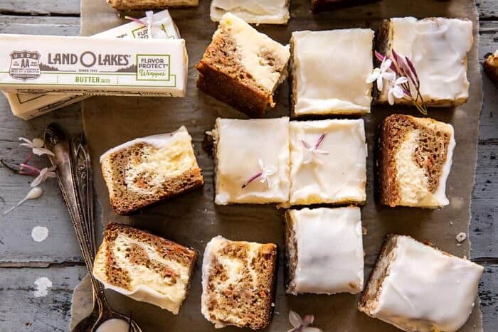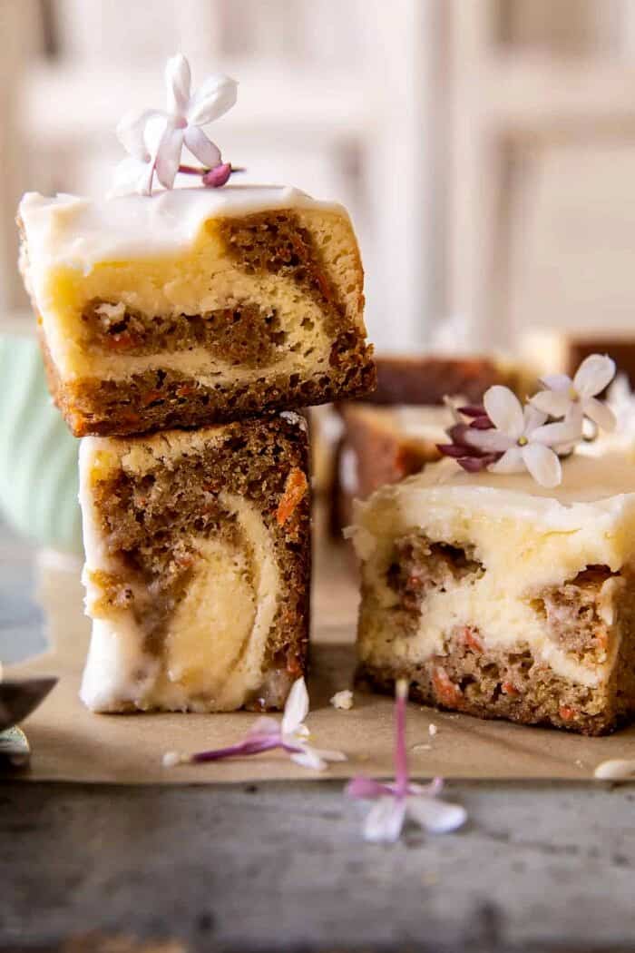 Lastly, if you make these Swirled Carrot Cake Cheesecake Bars be sure to leave a comment and/or give this recipe a rating! Above all, I love to hear from you guys and always do my best to respond to each and every comment. And of course, if you do make this recipe, don’t forget to tag me on Instagram! Looking through the photos of recipes you all have made is my favorite!