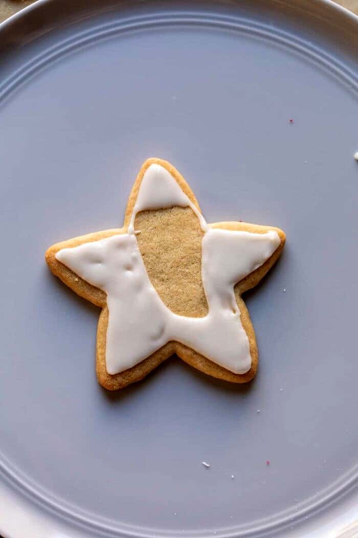 Officially kicking off the holiday season with The Santa Clause Cookies. Made with double the vanilla and sweet brown sugar, these cookies are soft, buttery, and perfectly sweet with hints of caramel throughout. They’re generously glazed with a sweet, thick, and creamy vanilla bean glaze that truly makes this cookie recipe melt in your mouth. The secret is all in the combination of hazelnut liquor, vanilla, and brown sugar, which keep these cookies incredibly flavorful, soft, and so delicious. Finish them off with a light dusting of vanilla sugar to keep the decorating simple and easy. Fun to bake, delicious to eat, a great homemade gift, and a festive addition to your holiday cookie box!